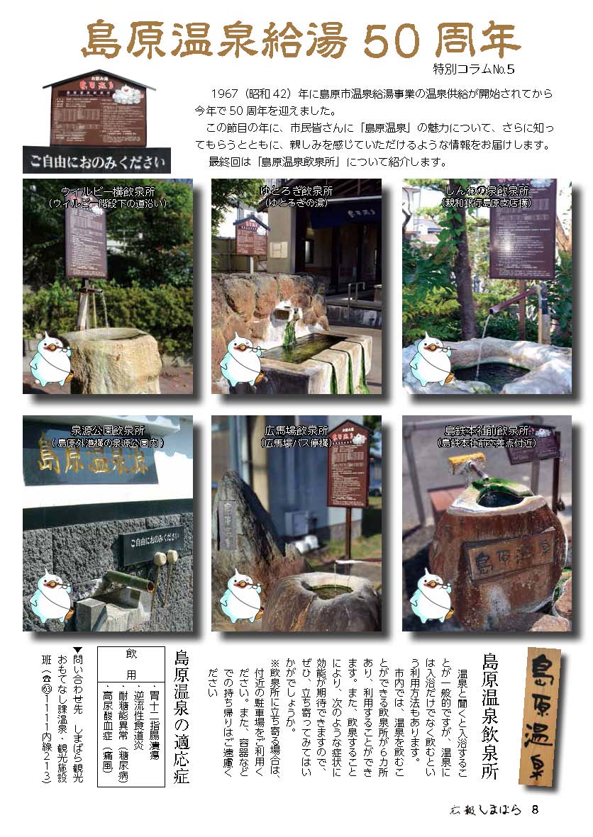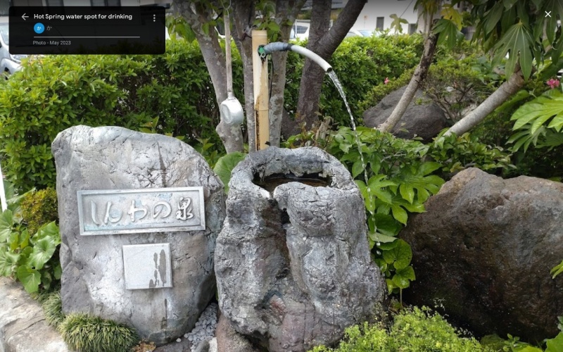 | [言い伝え・概要] | 城下町の中心近くで、ゆとろぎの湯の道を挟んだ反対側、十八親和銀行の駐車場の真ん中あたりの岩場に整備されている島原温泉の無料水汲み場。