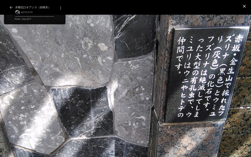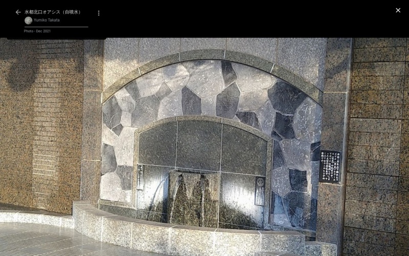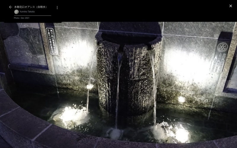 【水都北口オアシス】(岐阜県の水場)大垣市林町6丁目 駅北口広場にある 化石やライトアップの趣向が凝らされた自噴井戸 [名称] 水都北口オアシス [場所] 岐阜県大垣市林町6丁目 [言い伝え・概要] 大垣駅北口にある、平成24年に整備された地下150mから自噴する井戸。 壁面には赤坂・金生山で採掘されたフズリナ(黒色)とウミユリ(灰色)の化石が埋め込まれている。 夜になるとライトアップされるなど、趣向が凝らされている。 [保全活動] [Google クチコミ] こちら お気に入りに追加※自然の湧水は煮沸して飲用されるとより安全です。※水辺は水難や危険生物に十分気を付けてください。 Click to share on X (新しいウィンドウで開きます) X このエントリーをLINEで送る (新しいウィンドウで開きます) LINEに送る Facebook で共有するにはクリックしてください (新しいウィンドウで開きます) Facebook このエントリーをはてなブックマークに追加 (新しいウィンドウで開きます) はてなブックマーク 大垣市 | 岐阜県 投稿日: 2023年5月29日 投稿者: Sumai事務局
