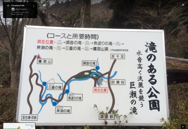 | [言い伝え・概要] | 巨瀬川に懸かる3滝(調音の滝、魚返りの滝、斧渕の滝)で最も大きい、落差27m、幅9mの分岐瀑。