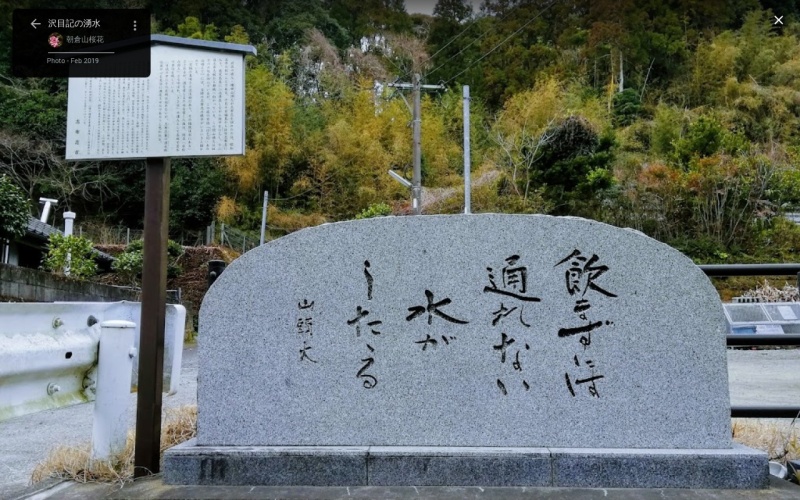 志布志城跡はシラス台地上にある山城で、その周辺には城跡を囲むように湧水が点在していて、麓の集落形成に影響を与えたと言われている。 「沢目記の湧水」は、沢目記集落の共有施設として利用されている。 湧水の奥には、昭和五年秋に訪れた種田山頭火の句碑が刻まれている。 |