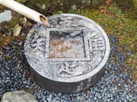 【杓底一残水】(山口県の水場)山口市香山町 杓の底の水も大切にする宗風を表した 参拝前の御手水