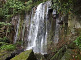 【阿字雄の滝】(平成の名水百選・山口県の水辺)萩市大井 阿武火山群・羽賀台の麓にある 玄武岩が冷え固まった柱状節理が見事な滝