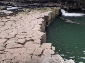【畳ヶ淵】(山口県の水辺)萩市弥富下 四十万年前の伊良尾山噴火で出来た柱状節理 六角形の石柱が敷き詰められた見事な淵