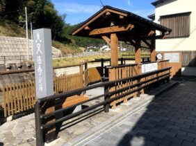 【美又温泉足湯】(島根県の水場)浜田市金城町追原 江戸末期から知られる優れた美肌の湯 川沿いにある東屋の無料足湯