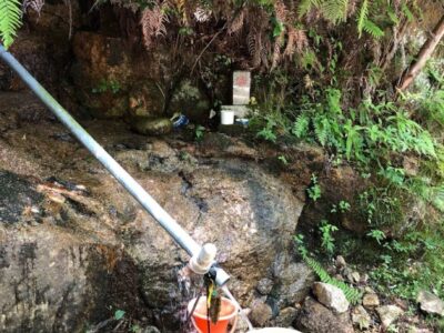 【おせきの名水】(広島県の湧水)広島市安芸区矢野町 展望広場へ向かう山道の途中 水分補給できる有難い地点