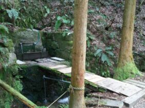 【つゆ太郎水】(広島県の湧水)廿日市市上平良 涼しげな場所にある 梅雨になると現れる蛇の神さまに因んだ山水