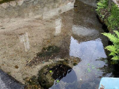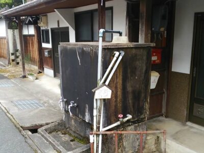 【水舟】(鳥取県の湧水)日野郡日野町根雨 かつては町の所々に設置され生活に使われた 現存する山の伏流水貯水槽