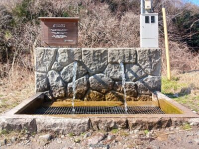 【大瀬ぼうき天然水】(鳥取県の水汲み場)東伯郡三朝町横手 キュリー公園の近く・県道沿いにある 道行く人々の給水所