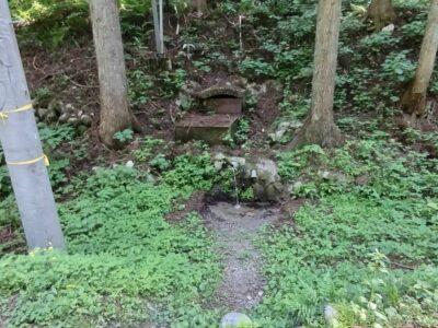 【水くみ場】(富山県の水汲み場)中新川郡上市町蓬沢 剣岳公園線道脇の木立の中にある 冷たくて美味しい湧き水