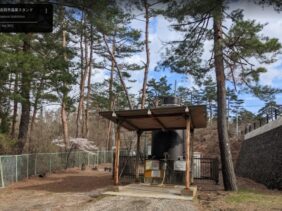 【富士吉田市温泉スタンド】(山梨県の水汲み場)富士吉田市上吉田 ふじさんミュージアムパークそば 何時でも自由に利用できる 無料の浴用温泉スタンド