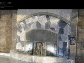 【水都北口オアシス】(岐阜県の水場)大垣市林町6丁目 駅北口広場にある 化石やライトアップの趣向が凝らされた自噴井戸