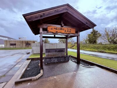【水の郷の天然水】(新潟県の水汲み場)魚沼市十日町 世界でも最大級の米糀工場の駐車場にある 地下100mより汲み上げた天然の伏流水