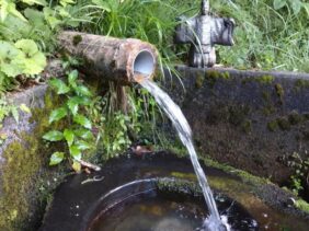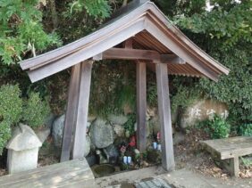 【御生水】(石川県の湧水)小松市津波倉町 布教の弘法大師が喉を潤した 東屋の下から湧き出る清水