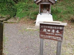 【段田清水】(福井県の湧水)越前市小谷町 金華山の山頂付近の岩の裂け目から湧き出る ふくいのおいしい水