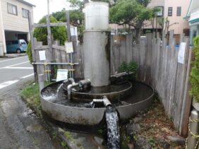 【井戸(掘抜)】(静岡県の水汲み場)沼津市千本緑町2丁目 街中の交差点の一角にある 水の流れを見ても音を聞いても涼やかな井戸施設