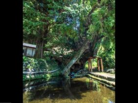 【寺の川の泉(サワラの湧き水)】(佐賀県の湧水)伊万里市黒川町横野 樹齢八百年の老杉の根元から出て 並々と池を満たし続ける清水
