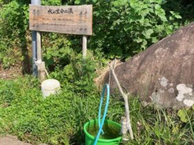 【川内野の湧き水】(佐賀県の湧水)伊万里市東山代町川内野 棚田の名所近く・アーチの鉄橋が見える 自然の恵みにほっとする天然水