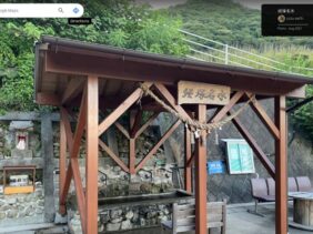 【山田湧水】(大分県の水汲み場)速見郡日出町豊岡 水神社手前の坂の途中にある 地区管理の屋根付き水汲み場