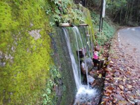 【長寿の水】(宮崎県の湧水)東臼杵郡椎葉村不土野 不土野川の最上流付近・上椎葉湯前線の道脇にある癒しの水処