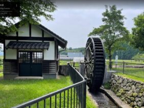 【前川水源】(熊本県の湧水)菊池市七城町亀尾 水車が回り噴水が上がる 風情ある前川公園の水場