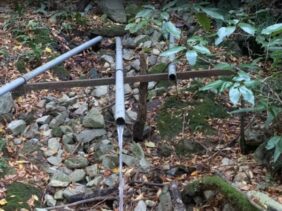 【ケヤキ谷の湧水】(福岡県の湧水)北九州市八幡西区畑 桜の名所近くの林道でひっそり湧き出る天然水