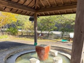 【足湯広場】(長崎県の水場)雲仙市小浜町雲仙 雲仙地獄の近く 何時でも入れる 東屋の下の丸い無料足湯