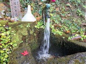 【天狗の湧水】(徳島県の湧水)吉野川市山川町奥野井 阿波富士頂上に向かう修験道の脇にある 大昔棲んでいた大天狗にちなんだ名水