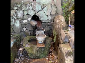 【御霊命水】(徳島県の湧水)鳴門市北灘町鳥ケ丸 海岸を走るバイパス沿いの路肩にある 昔落ち武者を救ったという伝説の霊水