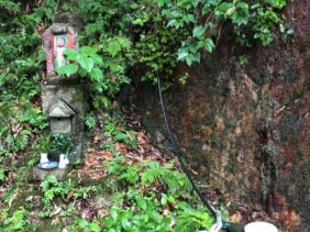 【神村の湧水】(香川県の湧水)高松市西植田町 山深い林道の岩盤から湧き出る名水