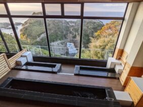 【万次郎足湯】(高知県の水場)土佐清水市足摺岬 白山洞門と太平洋を眼下に眺望する高台 無料の大型足湯施設