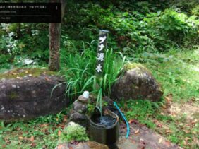 【楢の木立・長寿の名水】(山形県の湧水)尾花沢市大字母袋 宮城県境のナラ・スギ林にある 里の名水・やまがた百選