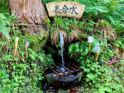 【長命水】(山形県の湧水)東根市東根 霊験あらたかな甑岳の登山道沿い 平成になって整備された取水場