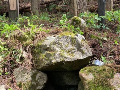 【岩清水】(山形県の湧水)東置賜郡高畠町二井宿 峠古道の途中・杉林の中にある 石積みの洞穴から湧き出る湧水
