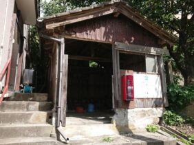 【学校坂 喜兵衛の井戸】(山形県の水場)鶴岡市湯野浜1丁目 昔、小学校で使う水にも用いられた 坂道の途中にある井戸小屋