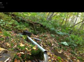 【西岳湧水】(岩手県の湧水)二戸郡一戸町奥西田子 西岳山腹700m 奥中山高原の森林で勢いよく流れ出る湧水