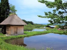 【山口の水車】(岩手県の水場)遠野市土淵町山口 蘇る遠野遺産 脱穀・製粉を同時に行う伝統的草葺屋根の水車小屋