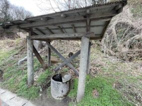 【鍛冶山湧水】(福島県の湧水)二本松市太田喜六田 道脇にポツリと佇む東屋が目印 通行人やライダー達の補給所となっている湧き水