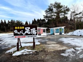 【森岳温泉かっぱの足湯】(秋田県の水場)山本郡三種町森岳木戸沢 日本有数のしょっぱい温泉を楽しめる 美容効果の高い無料足湯