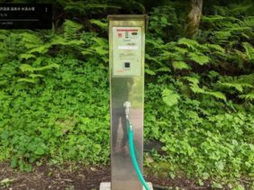 【湯ノ沢温泉 温泉水 水汲み場】(秋田県の水汲み場)湯沢市下院内湯ノ沢 清流沿いの山道の行き止まりにある 人里離れた温泉スタンド