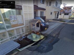 【大湊天然水 和戸の水】(青森県の水汲み場)むつ市川守町 海沿い住宅街の通り沿いで二方向に湧き出る水汲み場