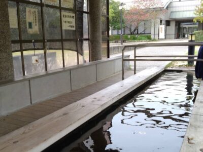 【けやきの足湯】(三重県の水場)三重郡菰野町潤田 町役場の隣「福祉公園」にある 菰野温泉けやきの湯・無料足湯