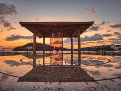 【とまり湯】(三重県の水場)鳥羽市大明東町1丁目 伊勢湾を一望する海辺にある 屋根付き無料足湯