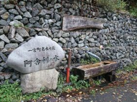 【阿舎利の水】(兵庫県の湧水)宍粟市一宮町河原田 渓流沿いの道脇にある 地元で大切にされる憩いの水