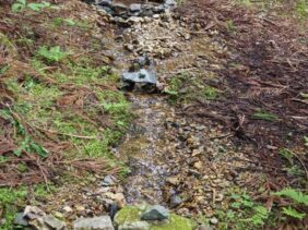【工の湧水】(和歌山県の湧水)伊都郡高野町 高野トンネルを抜けた北側にある 自然に溶け込む石積みの湧水路