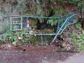 【泉原銘水天狗の水】(大阪府の湧水)茨木市泉原 霊園が点在する静かな山道の脇で 岩場からひっそりと湧き出る名水