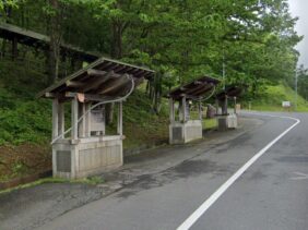 【グリーンパーク 温泉スタンド】(滋賀県の水汲み場)高島市朽木柏 温泉・レジャー施設の駐車場前にある簡易給湯施設 1回100円
