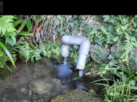 【富澤湧水】(埼玉県の湧水)和光市白子2丁目 江戸時代に宿場として栄えた湧水の町 病院駐車場脇にある湧水群最大水量の場所