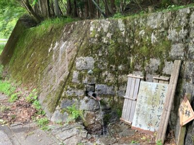 【内の籠の湧水】(栃木県の湧水)日光市足尾町 足尾銅山観光地に程近い 県道15号線沿いの擁壁から湧き出る湧水