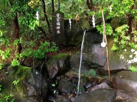 【愛宕福神水】(栃木県の湧水)那須郡那須町湯本 パワースポットの木陰で神々しく湧き出る霊水