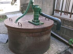 【浦島太郎の足洗井戸】(神奈川県の水場)横浜市神奈川区子安通1丁目 浦島太郎伝説の残る港町の住宅街にある 手押しポンプ式井戸